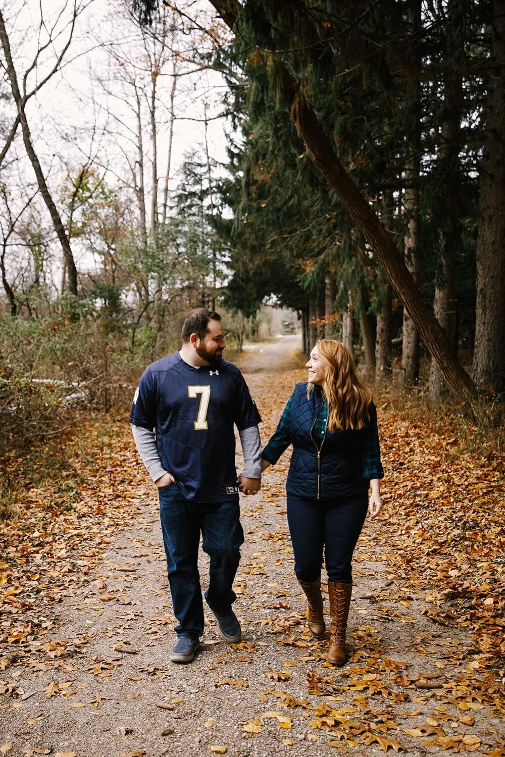 After we drank our coffee Cynthia and Joe walked Brutus over to Depot Park. This park showed us one of the best things (and worst?) about living in Michigan - we saw every season in Depot Park! From the beautiful golden fall leaves, bright green grass, and snow covered bridges, these two walked hand in hand and embraced it all. This engagement photoshoot totally showcased their life. Through every season of life - they have each others backs.